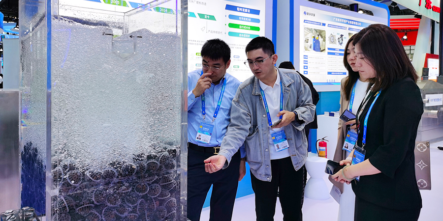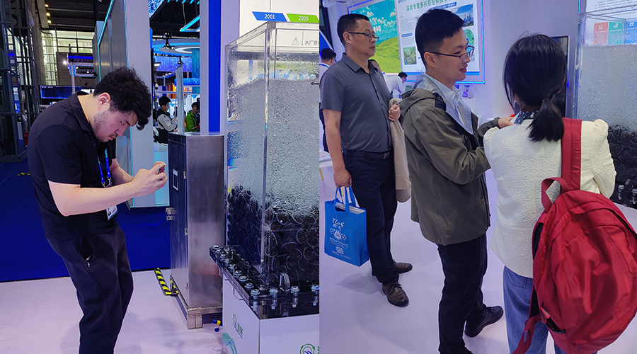 本屆高交會上,深圳清泉所展示的短時泥膜法工藝、上向流反硝化濾池工藝、曝氣生物濾池演示裝置引起了到訪國內外觀眾的好奇,有現(xiàn)場直播游覽的、有拍照傳給同事討論的、有現(xiàn)場溝通合作意向的,不少嘉賓領導、專業(yè)觀眾仔細觀看后還會咨詢工藝和解決方案的詳細信息。
