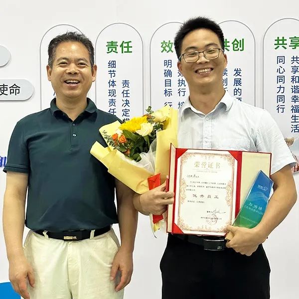 這樣的榮譽(yù),他們當(dāng)之無愧。因此葉總也親自為獲獎?wù)邆冾C發(fā)了2022年度優(yōu)秀員工的獎項,送上了證書、獎金以及鮮花,鼓勵他們再接再厲,同時也希望其他同事能夠以他們?yōu)榘駱樱瑺幦〕蔀?023年的年度優(yōu)秀員工。(孫工因出差未到現(xiàn)場,現(xiàn)場進(jìn)行了視頻通話告知,獎品及獎勵將在出差結(jié)束后發(fā)放。)