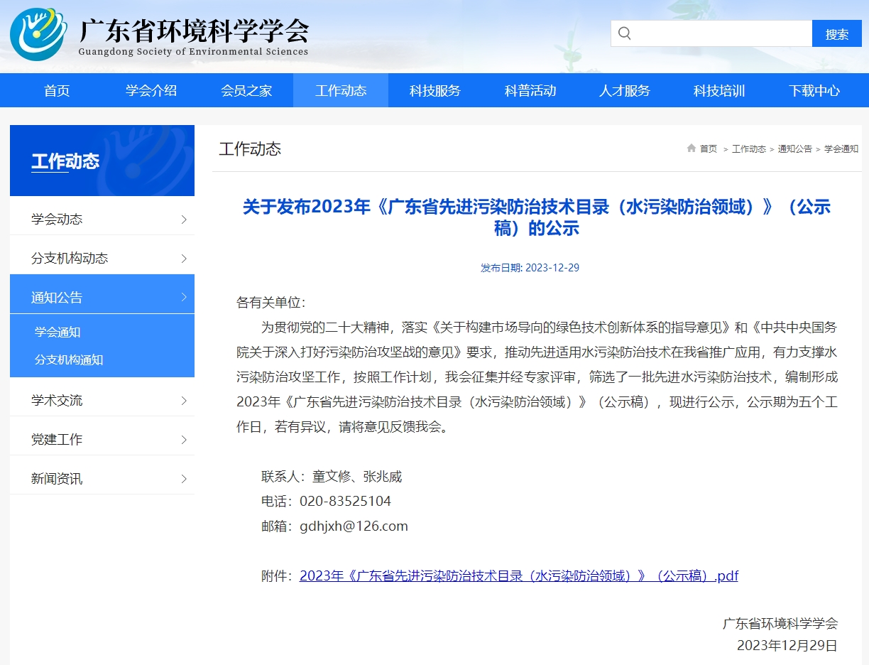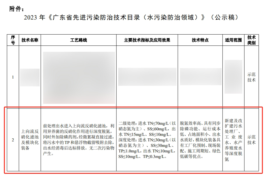喜報 | 上向流反硝化濾池及模塊化裝備入選2023 年《廣東省先進污染防治技術目錄》